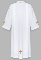 ( ilość produktów: 39 )Alby to długie szaty liturgiczne noszone przez wszystkie osoby prowadzące i usługujące w czasie liturgii Mszy świętej. Zatem noszą je zarówno księża, jak i ministranci czy lektorzy. Pierwotnie alby szyto z lnu, natomiast dzisiaj wykorzystuje się do tego celu inne szlachetne materiały. Kapłani zakładają je zawsze na stuły. Albę, jeśli jest odpowiednio długa i luźna można przepasać sznurem symbolizującym wstrzemięźliwość i zwanym cingulum. W ofercie naszego sklepu znaleźć można piękne i niezwykle delikatne alby uszyte z najwyższej jakości materiałów – żorżety oraz gwarantującego pełen komfort użytkowania stretchu. Część z nich posiada piękną i delikatną dekorację z grubej gipiury, która nadaje albie pożądanego, delikatnego charakteru. Wszystkie cechują się niezwykle precyzyjnym wykonaniem dbającym o każdy detal.