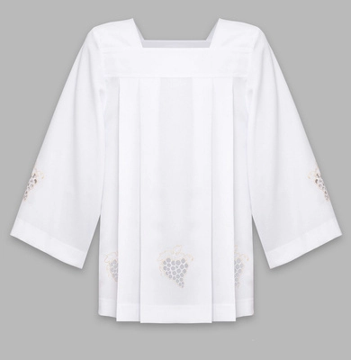 ( ilość produktów: 14 )Komże to szaty liturgiczne przeznaczone, podobnie jak alby, dla ministrantów. Komża jest swego rodzaju skróconą albą, jednakże nie nosi się do niej cingulum – czyli sznura symbolizującego czystość. Każda komża uszyta jest z białego materiału, który symbolizować ma czystość duszy i serca. W ofercie naszego sklepu z szatami liturgicznymi prezentujemy bardzo szeroki wybór różnego rodzaju komży. Wszystkie uszyte są z lekkiej żorżety lub elastycznego stretchu gwarantującego pełen komfort noszenia. Część z nich posiada dodatkowe elementy dekoracyjne w postaci gipiury lub precyzyjnego haftu. W naszym sklepie można zaopatrzyć się w komże uszyte w kroju rzymskim (czyli charakteryzującym się czworokątnym wycięciem pod szyją). Wszystkie modele komży przeznaczone są zarówno dla niewysokich chłopców, jak i stosunkowo wysokich mężczyzn – wystarczy wybrać na panelu odpowiedni rozmiar.