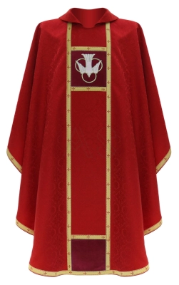 ( ilość produktów: 25 )Efektowne zdobienia i hafty przedstawiające Zesłanie Ducha Świętego to idealne uzupełnienie okolicznościowych szat liturgicznych tj. ornaty gotyckie i semi gotyckie, dalmatyki i kapy gotyckie, a także mirty i welony. W naszym sklepie znaleźć można wiele tego typu produktów. Wszystkie wykonane zostały z doskonałej jakości materiałów, zwykle delikatnej w dotyku i bardzo trwałej elany, zaopatrzone efektownymi zdobieniami w postaci wspomnianych symbolicznych haftów – Zesłanie Ducha Świętego – oraz innych zdobień umieszczonych z przodu oraz z tyłu każdej szaty. Warto wspomnieć, że wszystkie szaty liturgiczne oferowane są wraz ze stułą – dalmatyki ze stułą diakońską. Produkty z tej kategorii wyróżniają się oryginalną kolorystyką i efektownymi zdobieniami. Są bardzo trwałe, wygodne i niezwykle praktyczne, dzięki czemu mogą być wykorzystywane przez wiele lat posługi duszpasterskiej.
