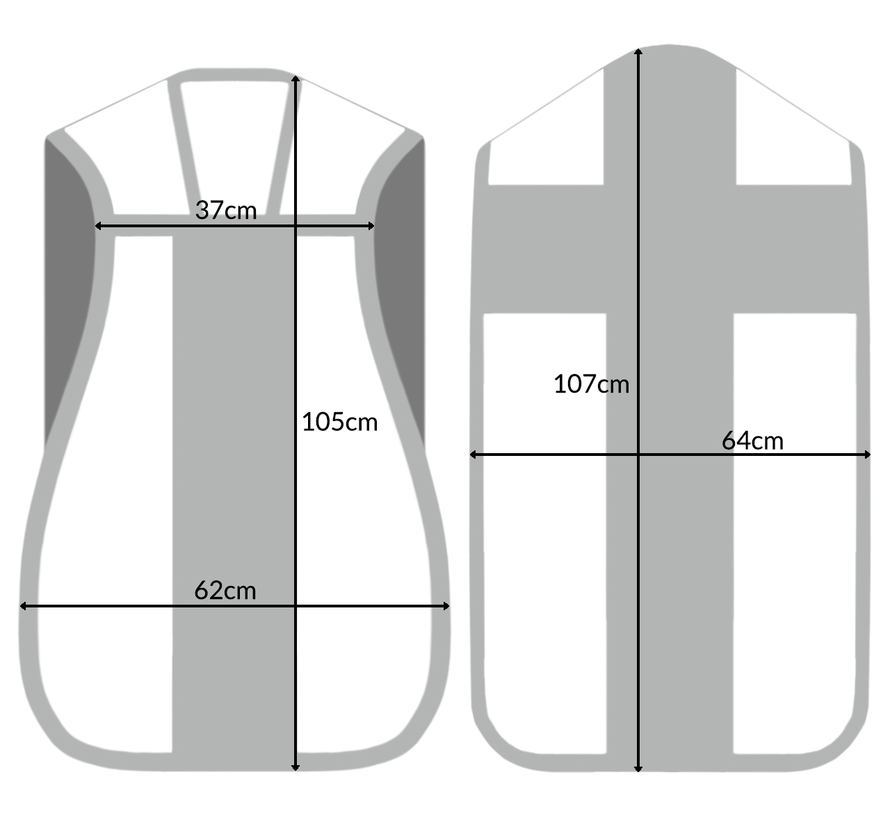Le set comprend : chasuble romaine, étole manipule, bourse et voile de calice